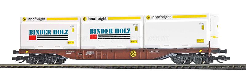 Type Sgns 691 Container Flatcar w/3 Wood Chip Containers -- Innofreight w/Binder Holz Containers (Era V, w/white, Containers)