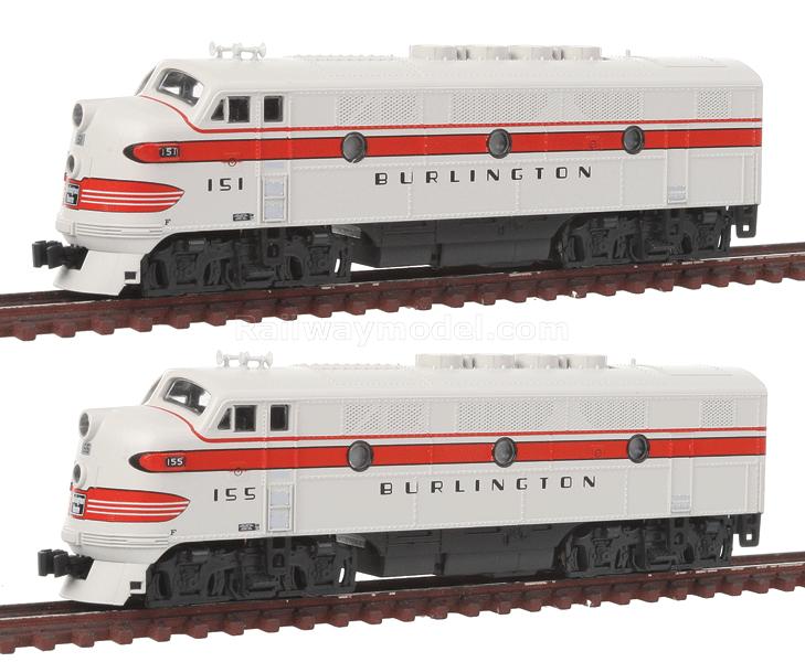 Тепловоз EMD F2 - две секции A-A, с двумя головными прожекторами. Принадлежность Chicago, Burlington & Quincy #151, 155 (gray, red)